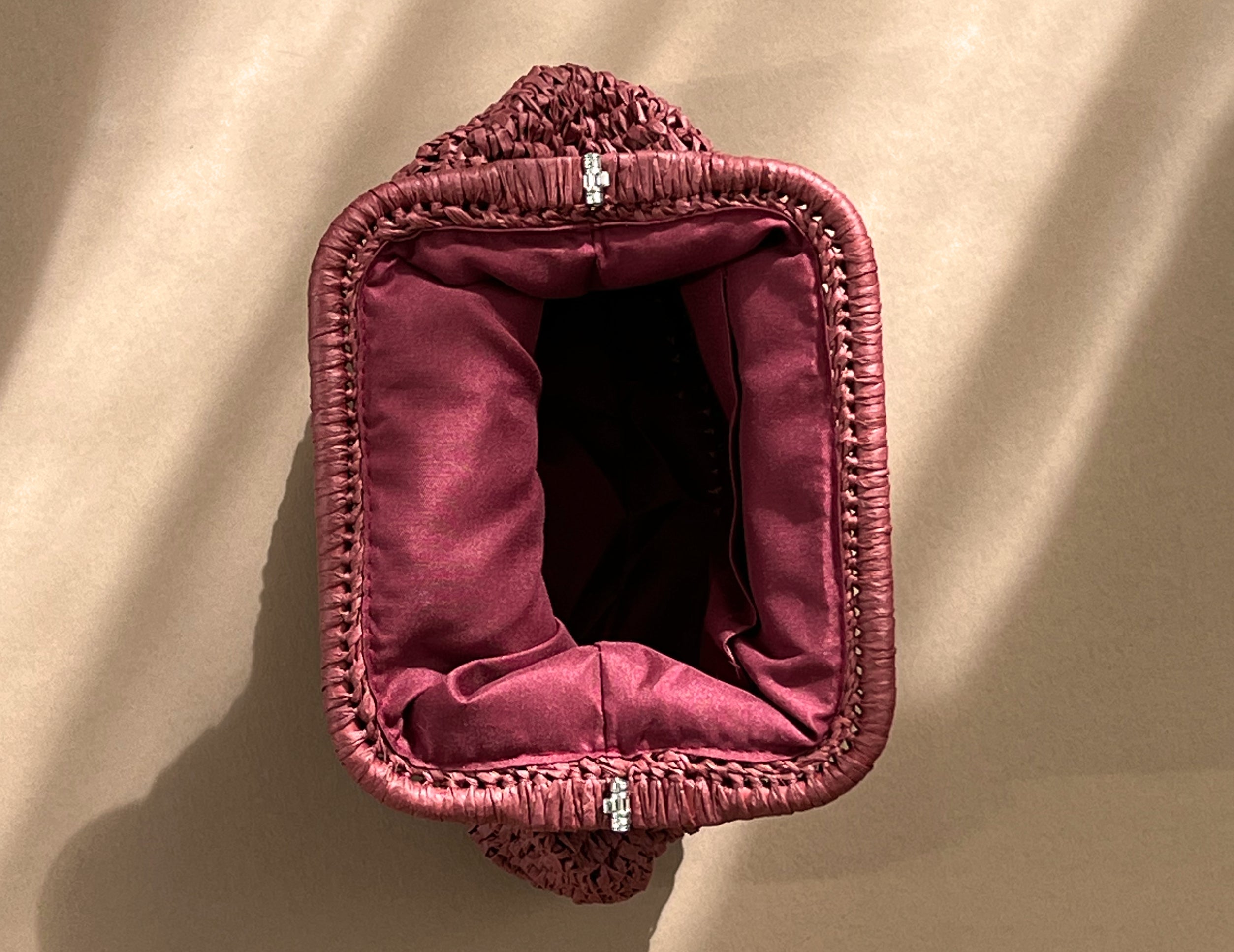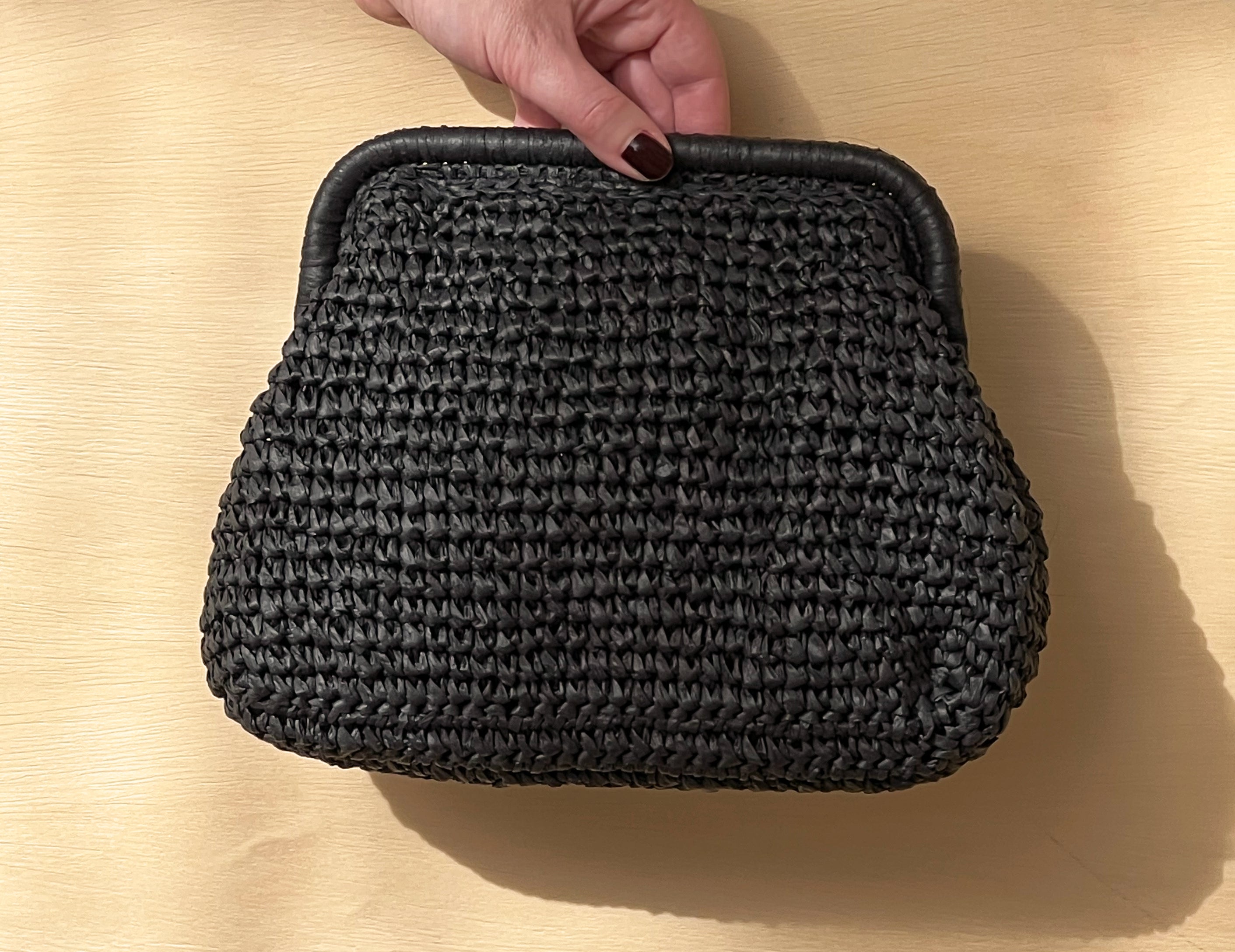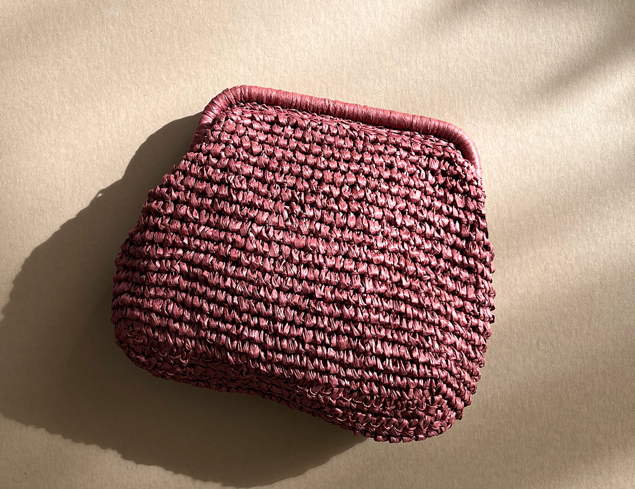 Add a touch of texture to any outfit with the Rue clutch. Woven in a lightweight, paper rafia in a nostalgic, coin purse shape, this bag is the perfect size for just the essentials. The hinged, clamshell opening at the top lends to a minimalist finish, with no buckle or clasp needed. Choose from versatile black or warm mahogany and pair it with a simple slip dress and ballet flats, or tuck it under your arm with a denim jacket and linen trousers.