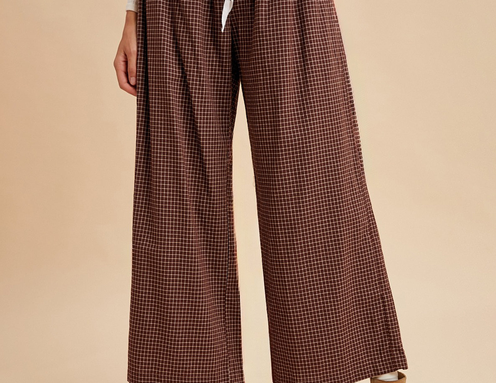 Sharon Check Print Wide Leg Cotton Pants