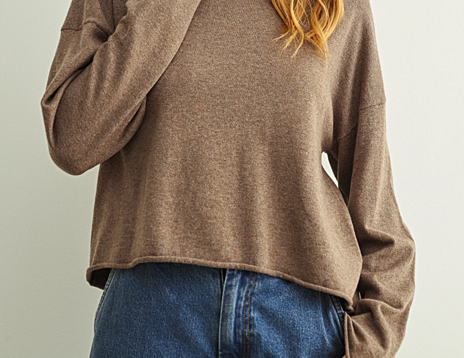 Sloan is an ultra-soft, long-sleeve basic you'll keep in heavy rotation. The silhouette is boxy and relaxed with dropped shoulders, rolled hems, and a hip-length finish.