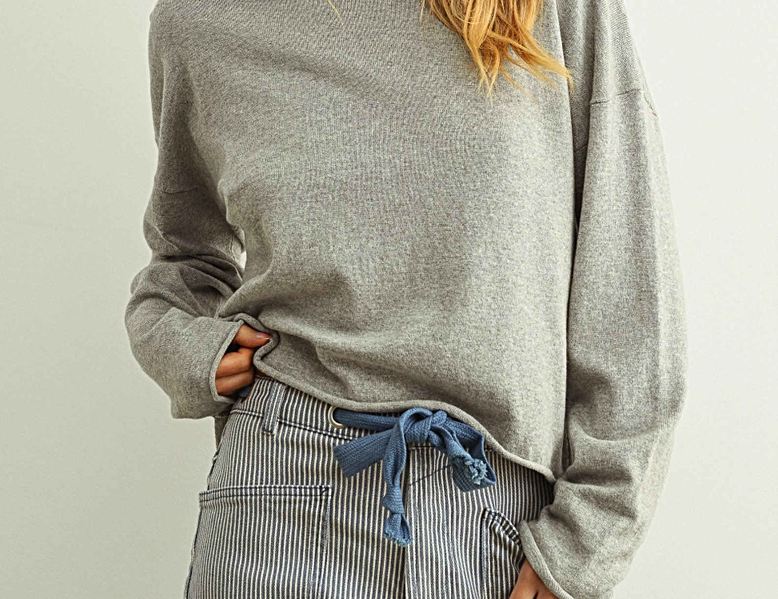 Choose from classic grey or warm mushroom and pair this easy, lightweight knit with vintage jeans and sandals or boots.