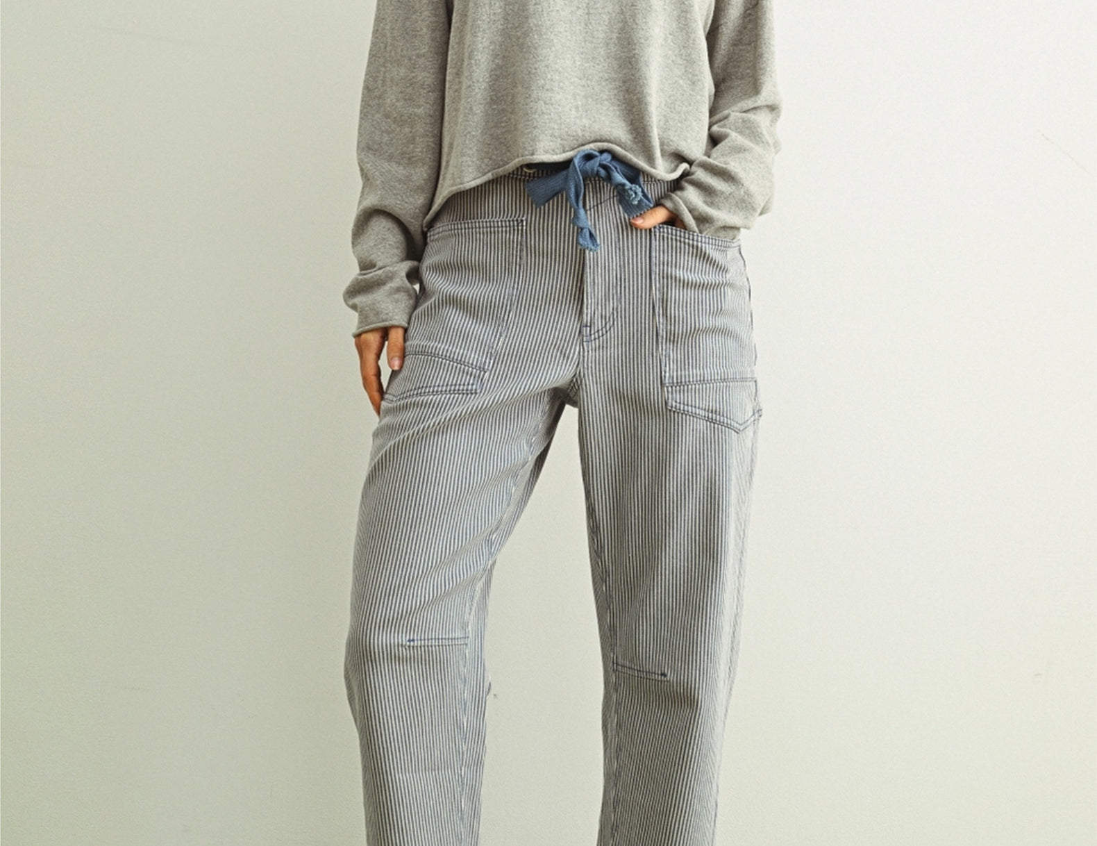 - Rolled hem + cuffs