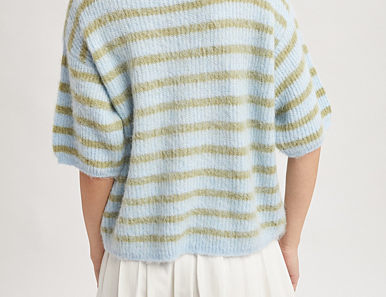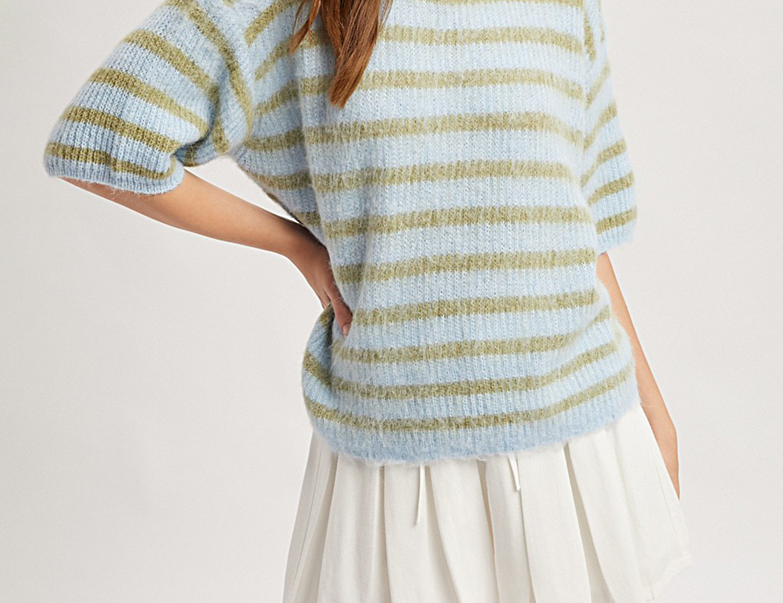 Spencer Fuzzy Striped Short Sleeve Sweater