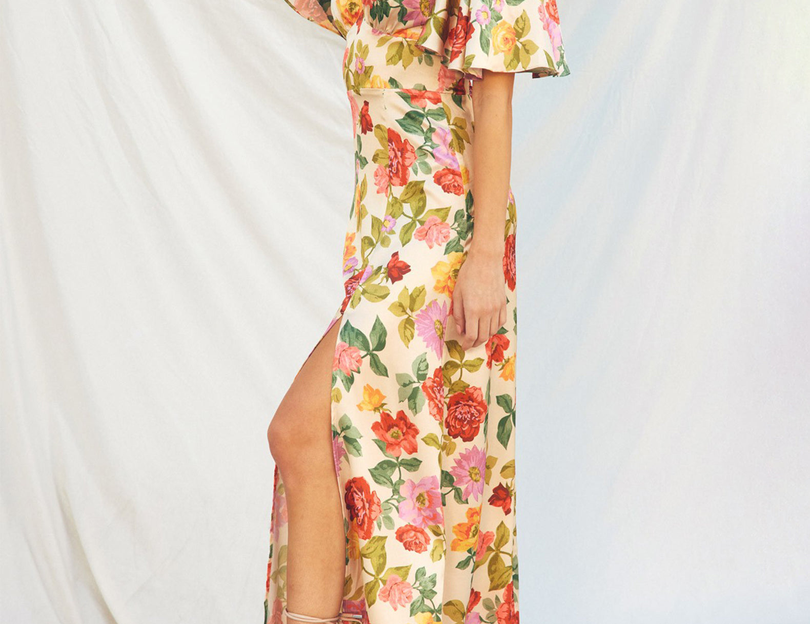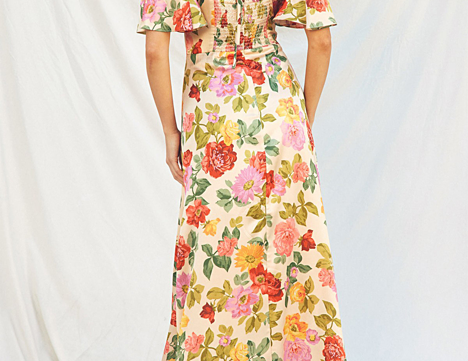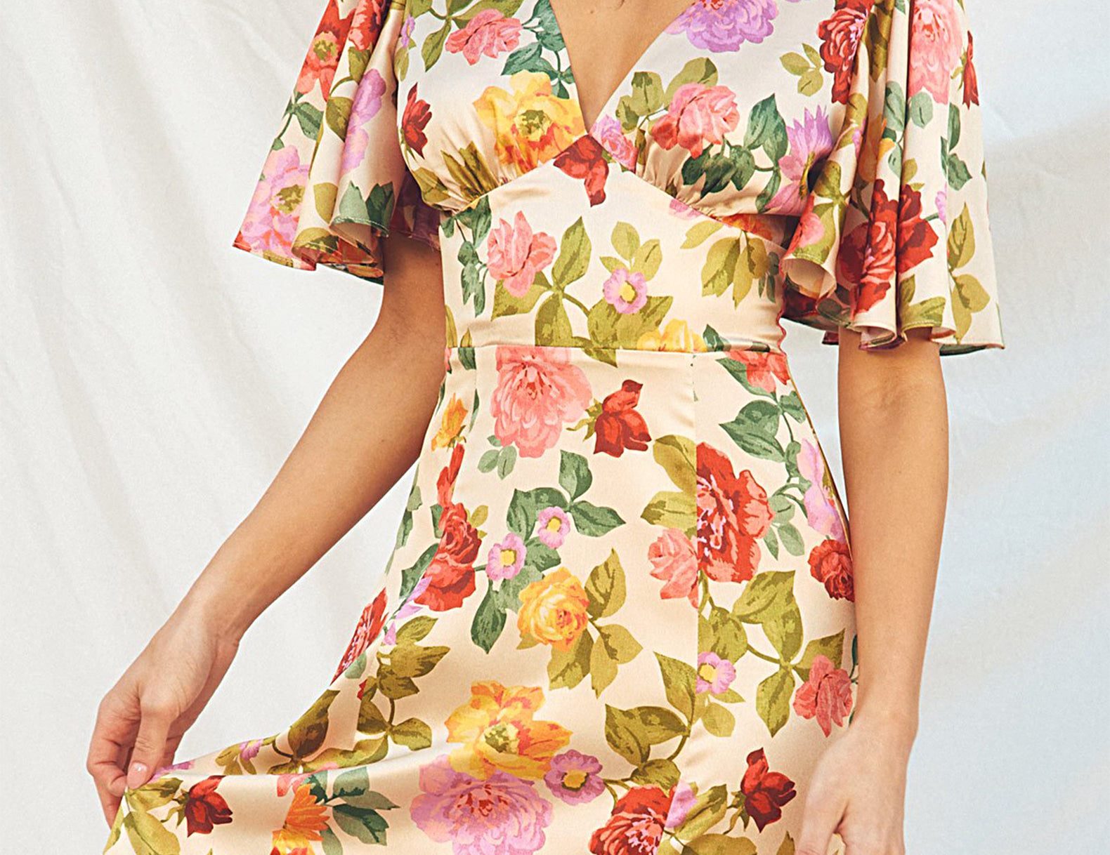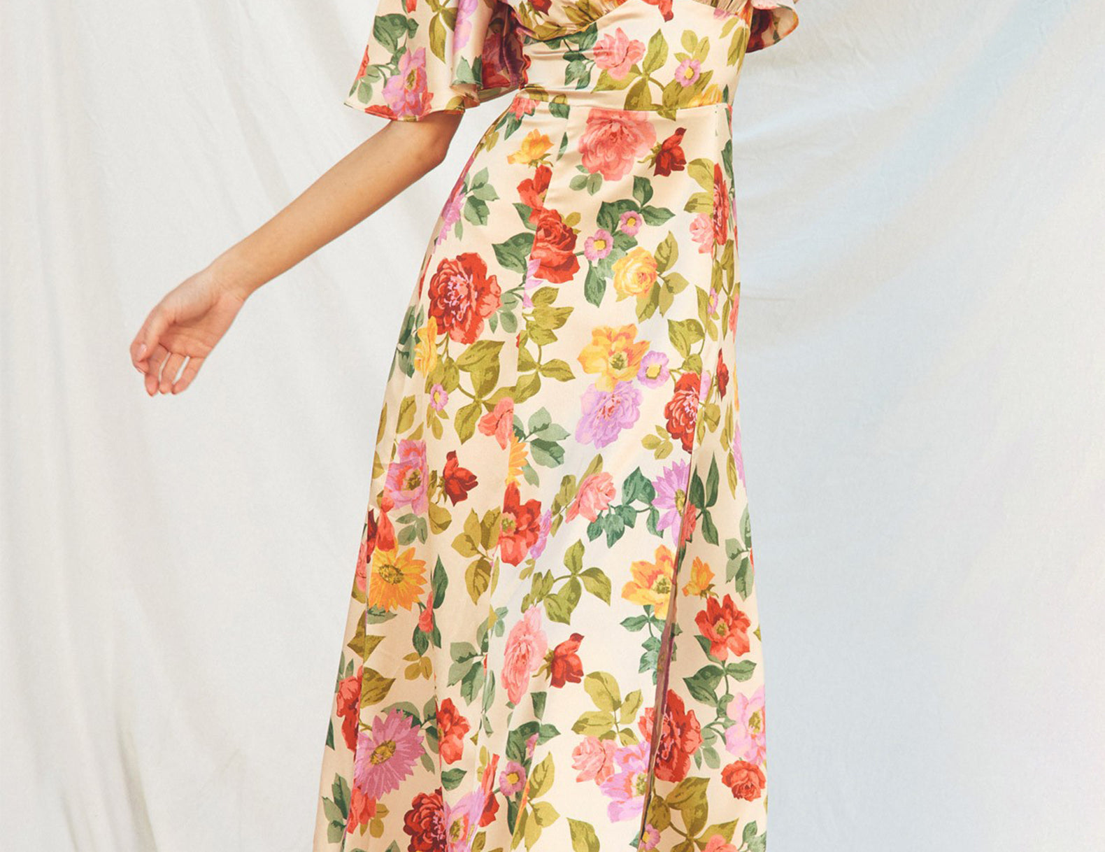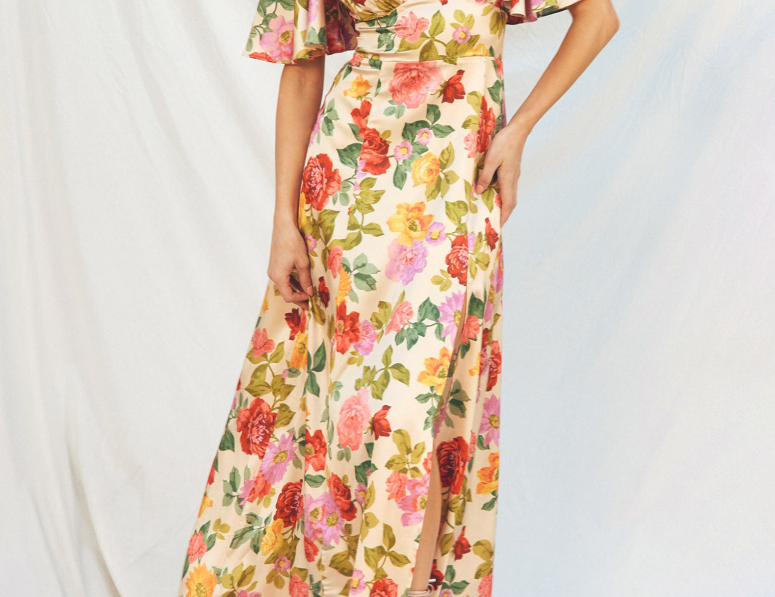 Taylor Flutter Sleeve Satin Floral Maxi Dress