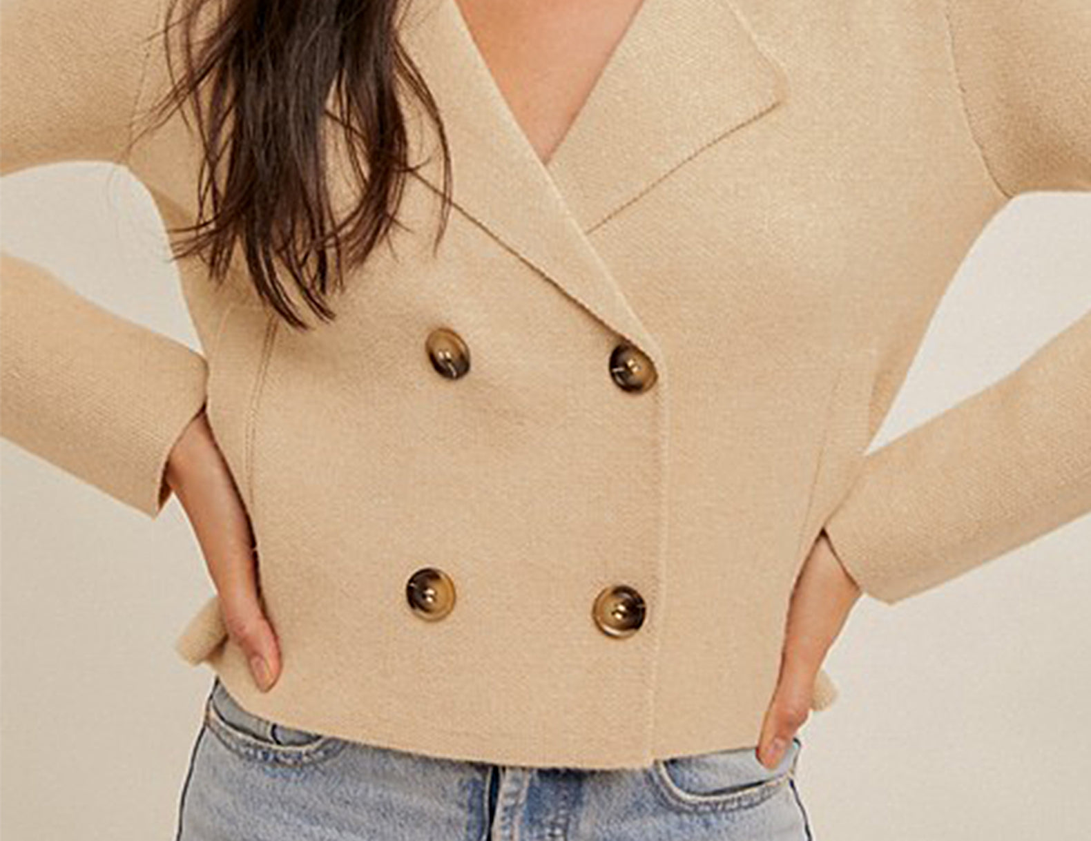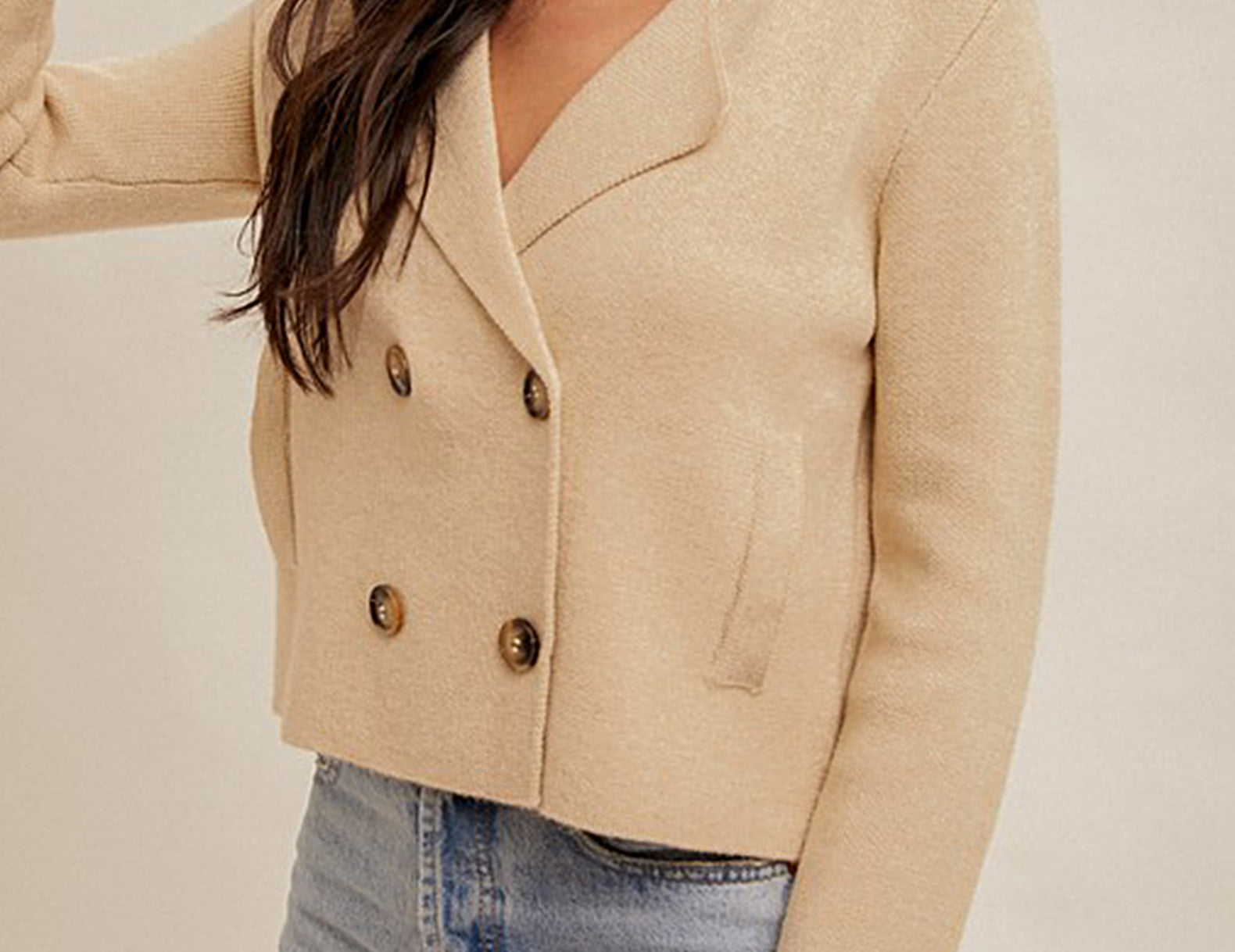 Soft and substantial in a jacket-cut sweater, the Verona is designed in a boxy, semi-cropped fit against a weighted ecru knit. Timeless with a double breasted detail in oversized tortoise buttons, this plush knit jacket is perfect with jeans, trousers or toss over a floral midi for a polished finish.