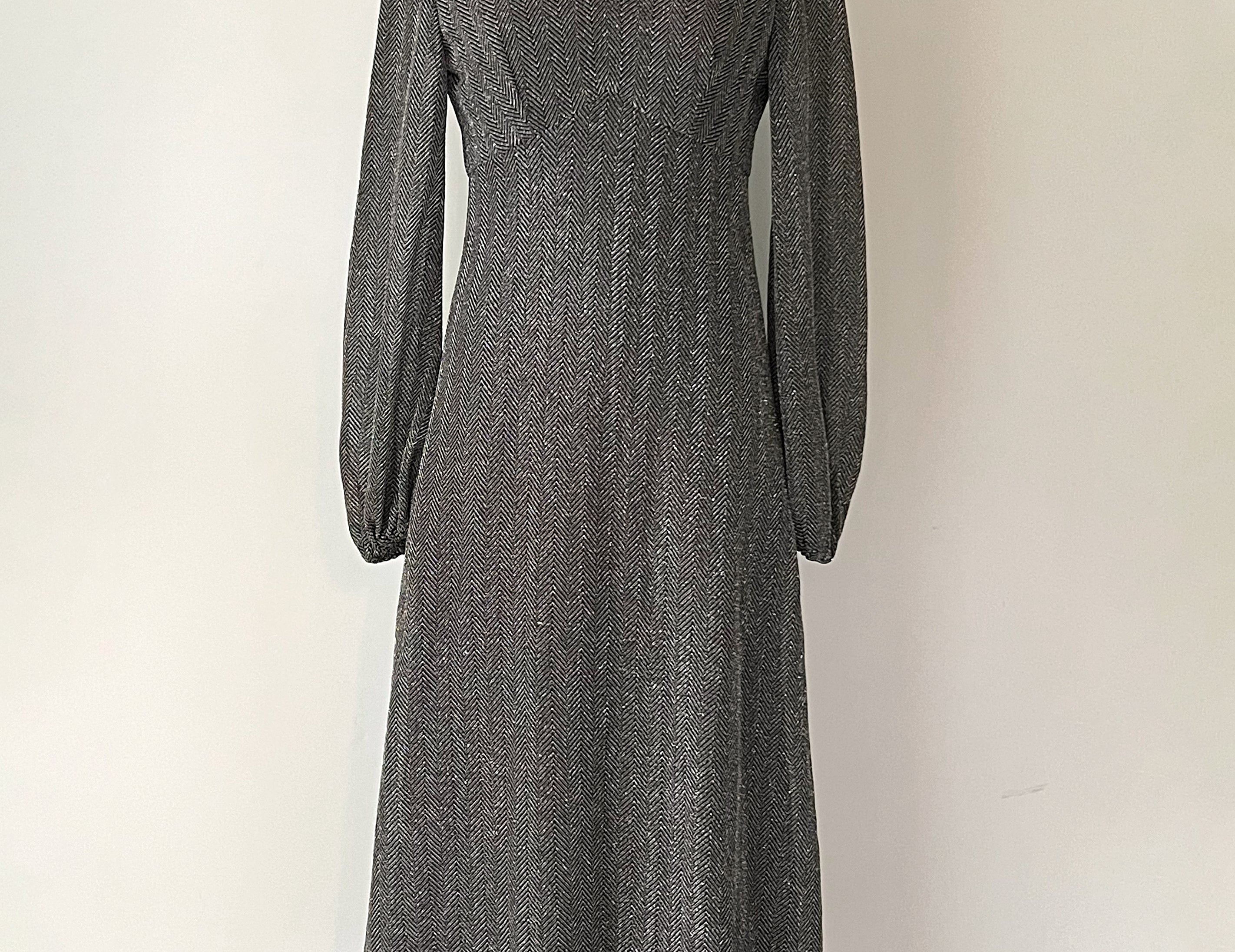 Cut to an iconic 70s empire-waisted maxi silhouette with a soft V-neck and full hemline