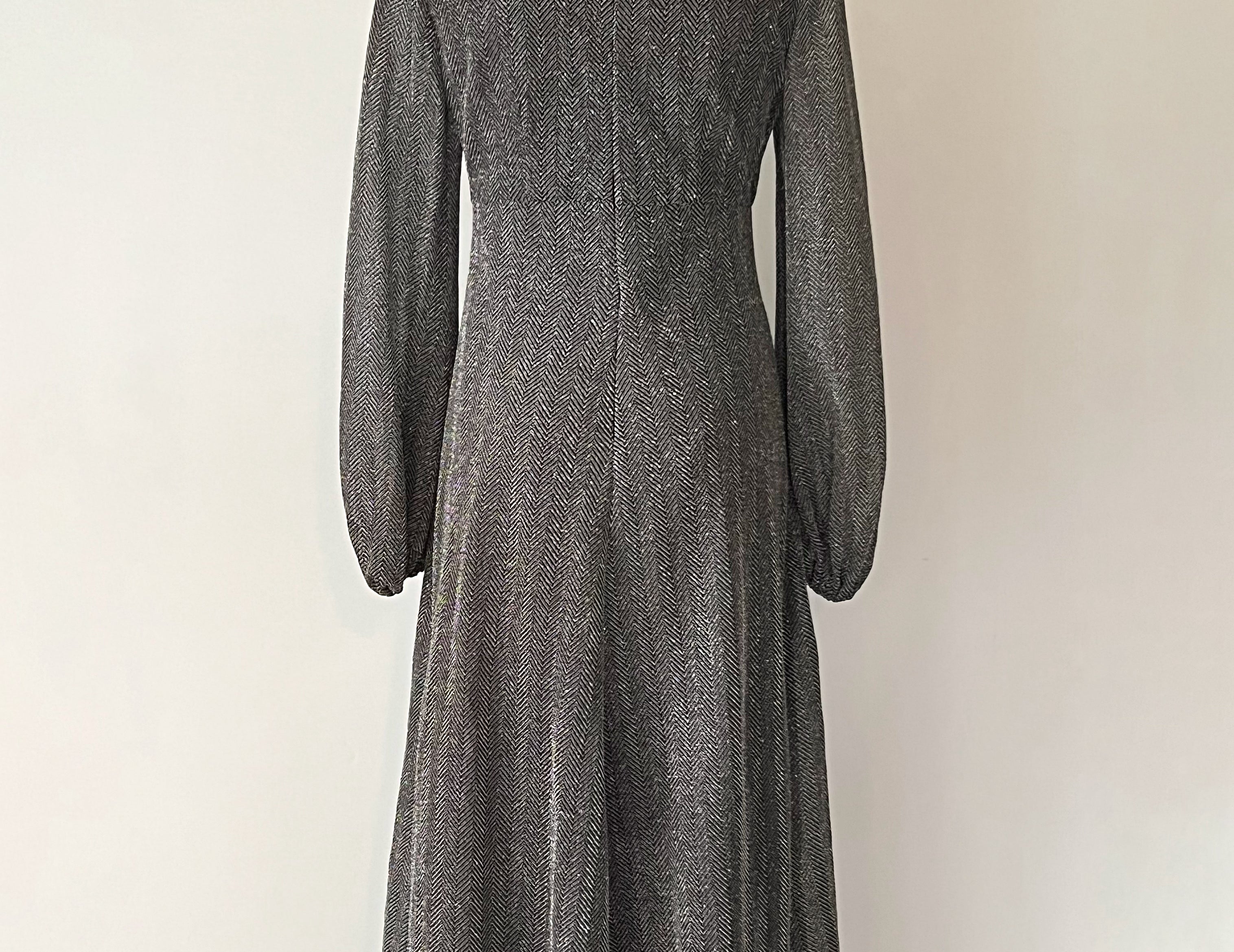Vintage 1970s Handmade Shimmery Silver Bishop Sleeve Maxi Dress