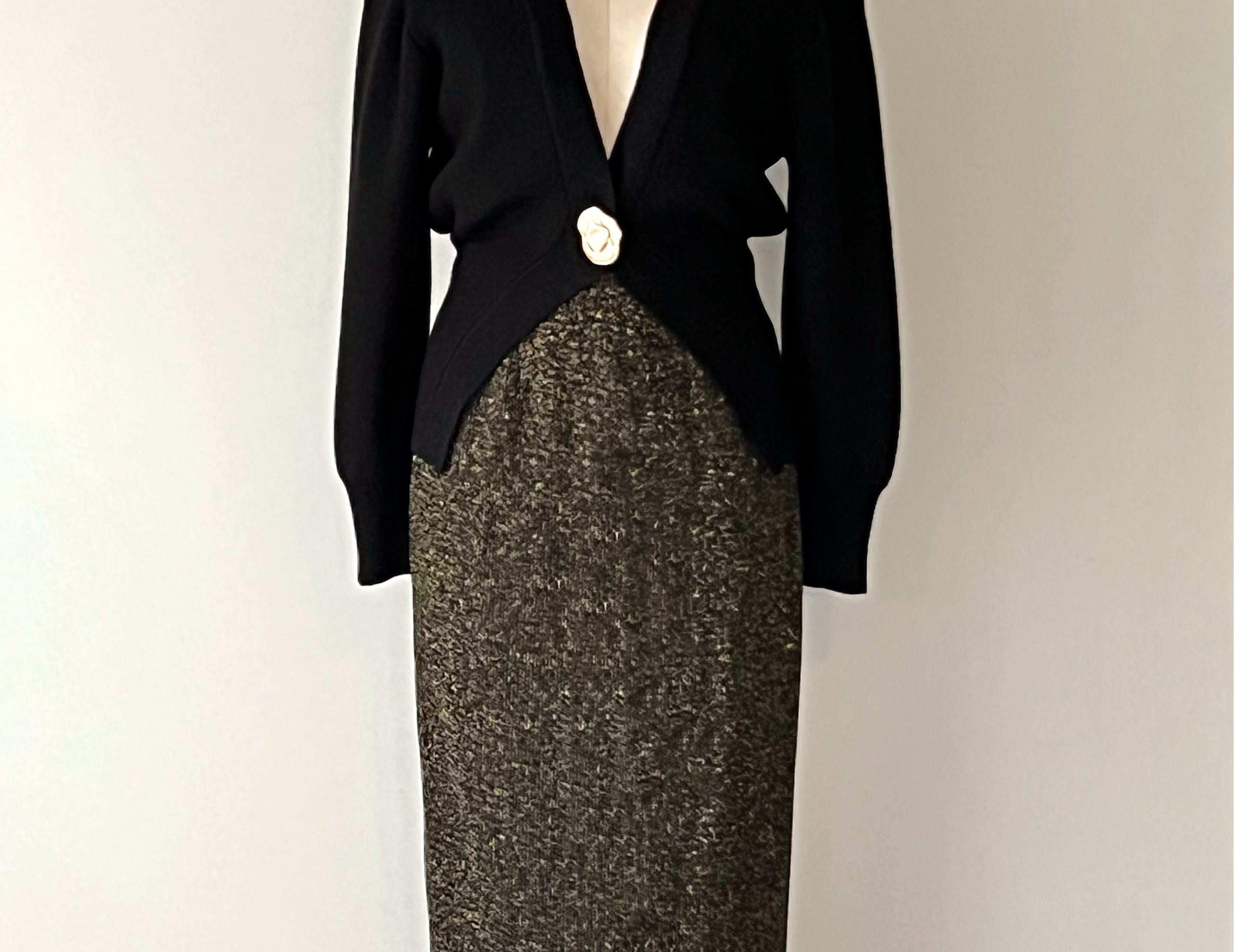 Vintage 1980s Gold Shimmer Airy Knit Pencil Skirt