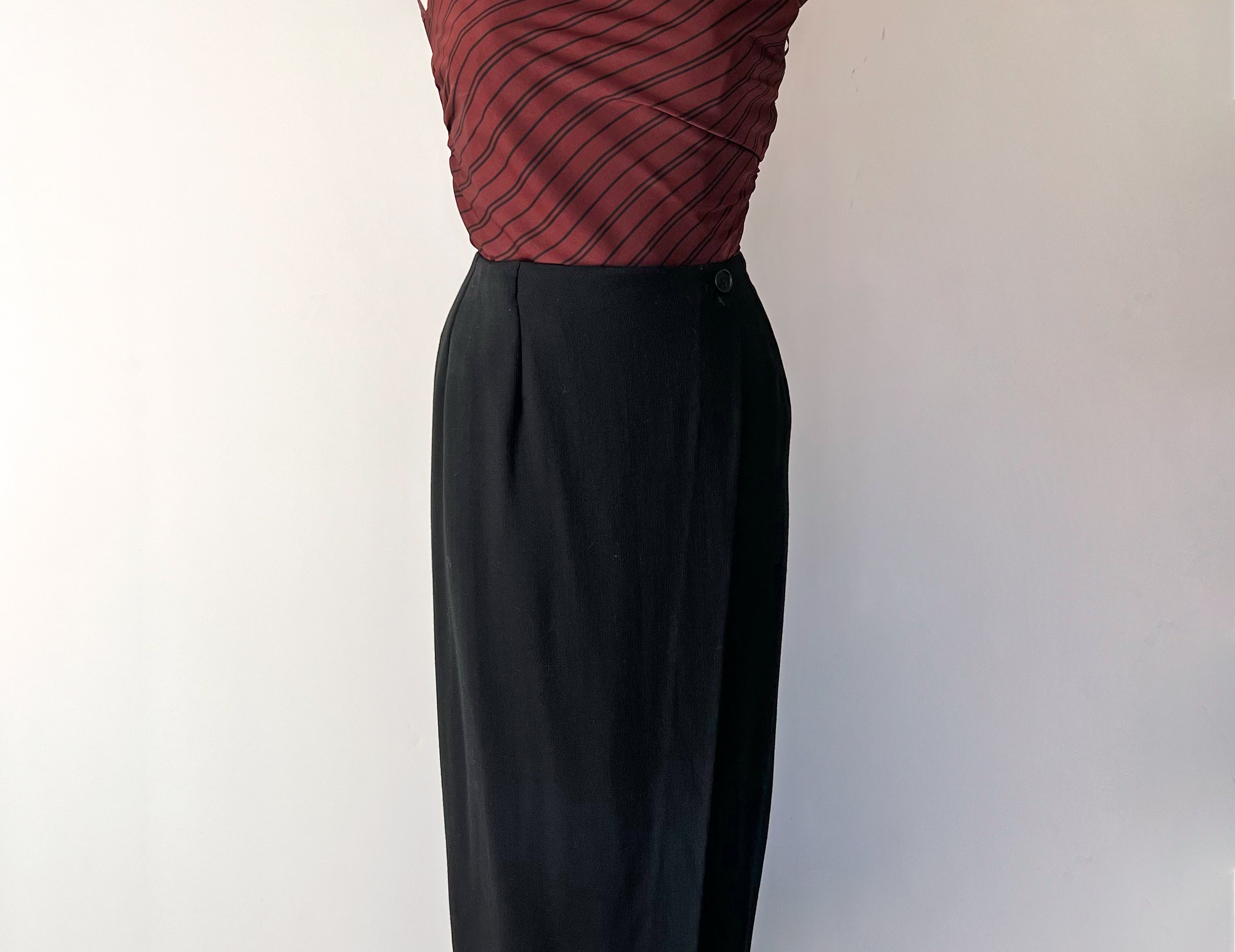 Vintage 1980s Pure Wool Crepe Wrapped Maxi Skirt