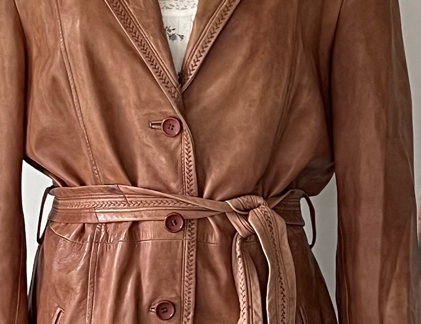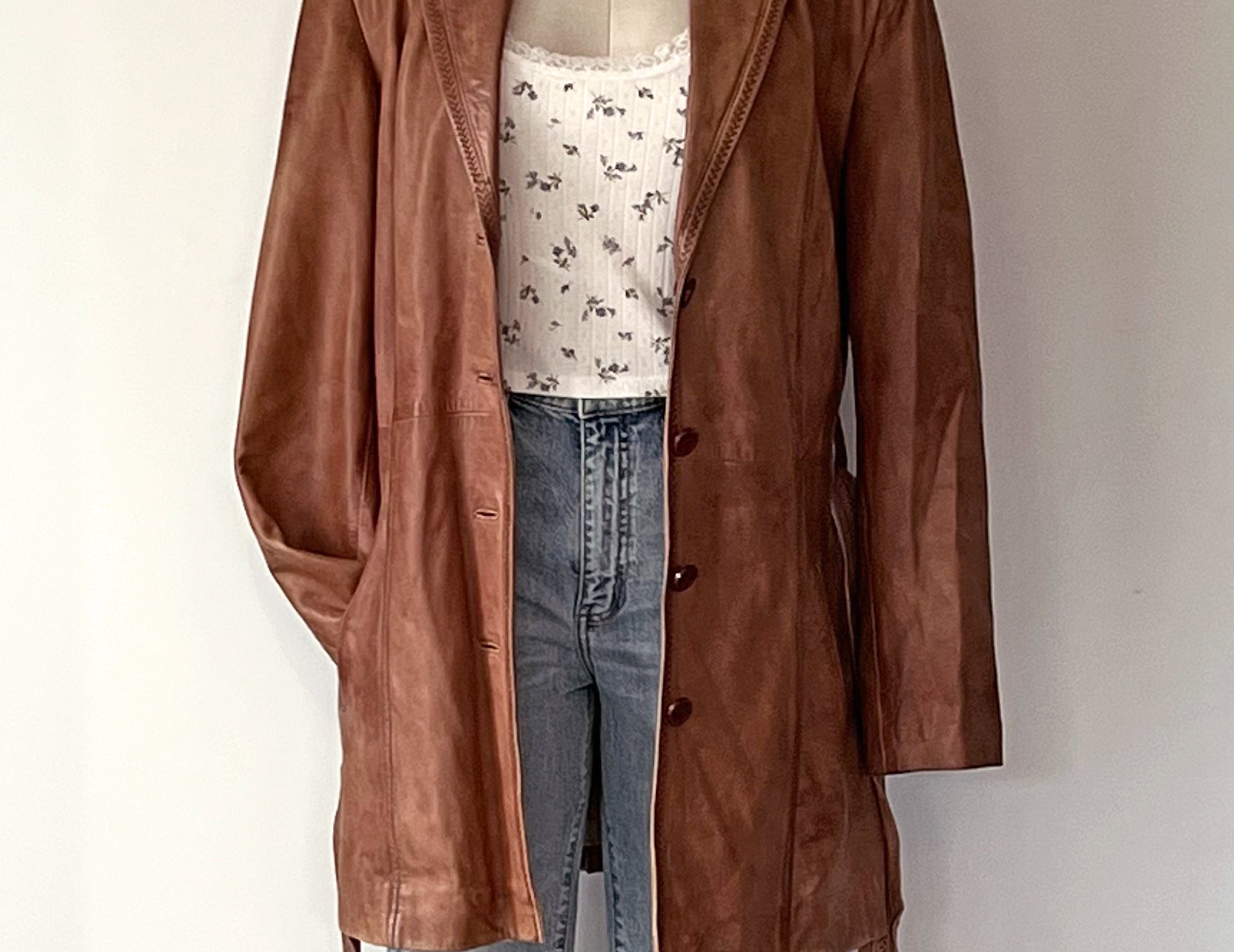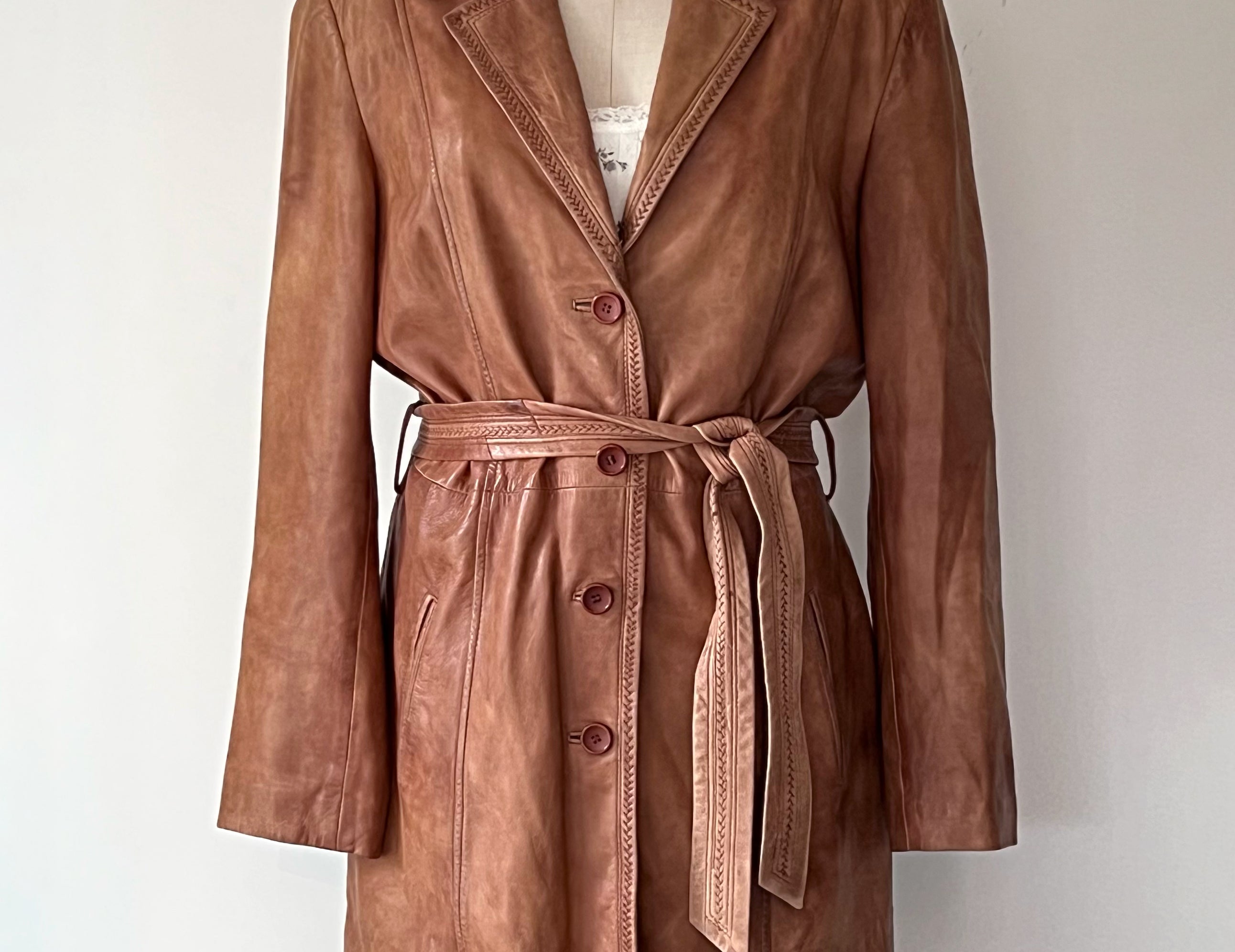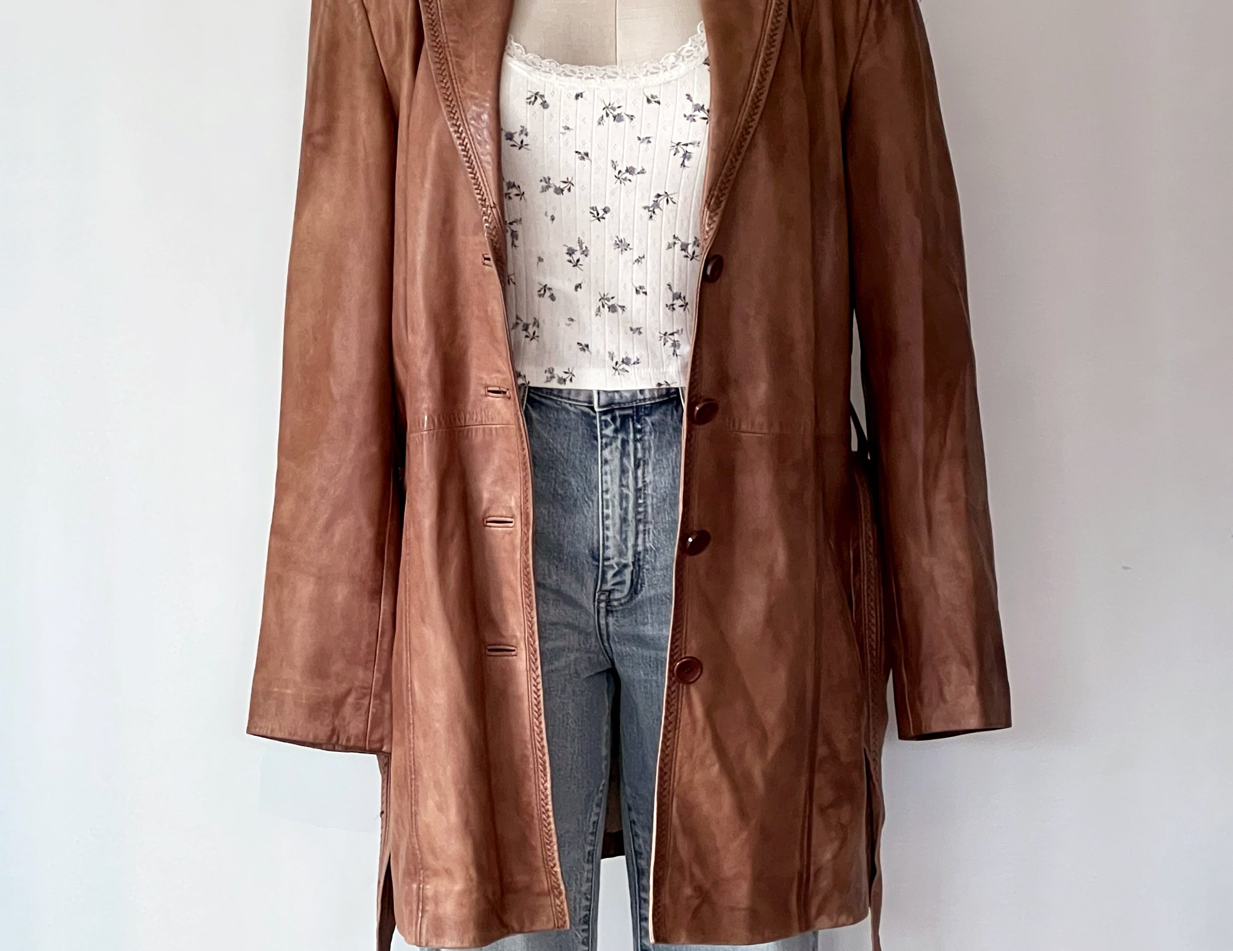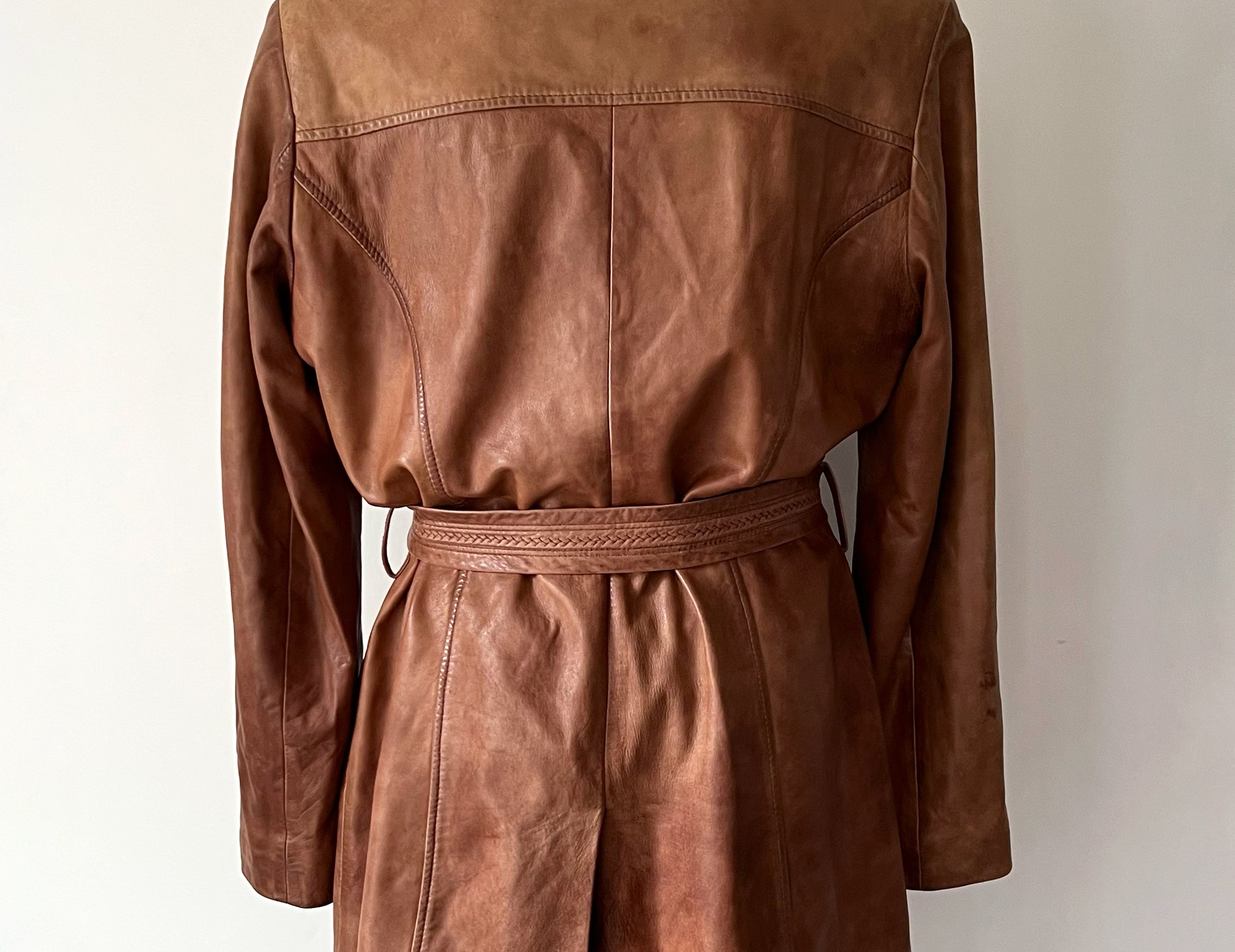 Vintage 1980s Tawny Brown Leather Longline Jacket