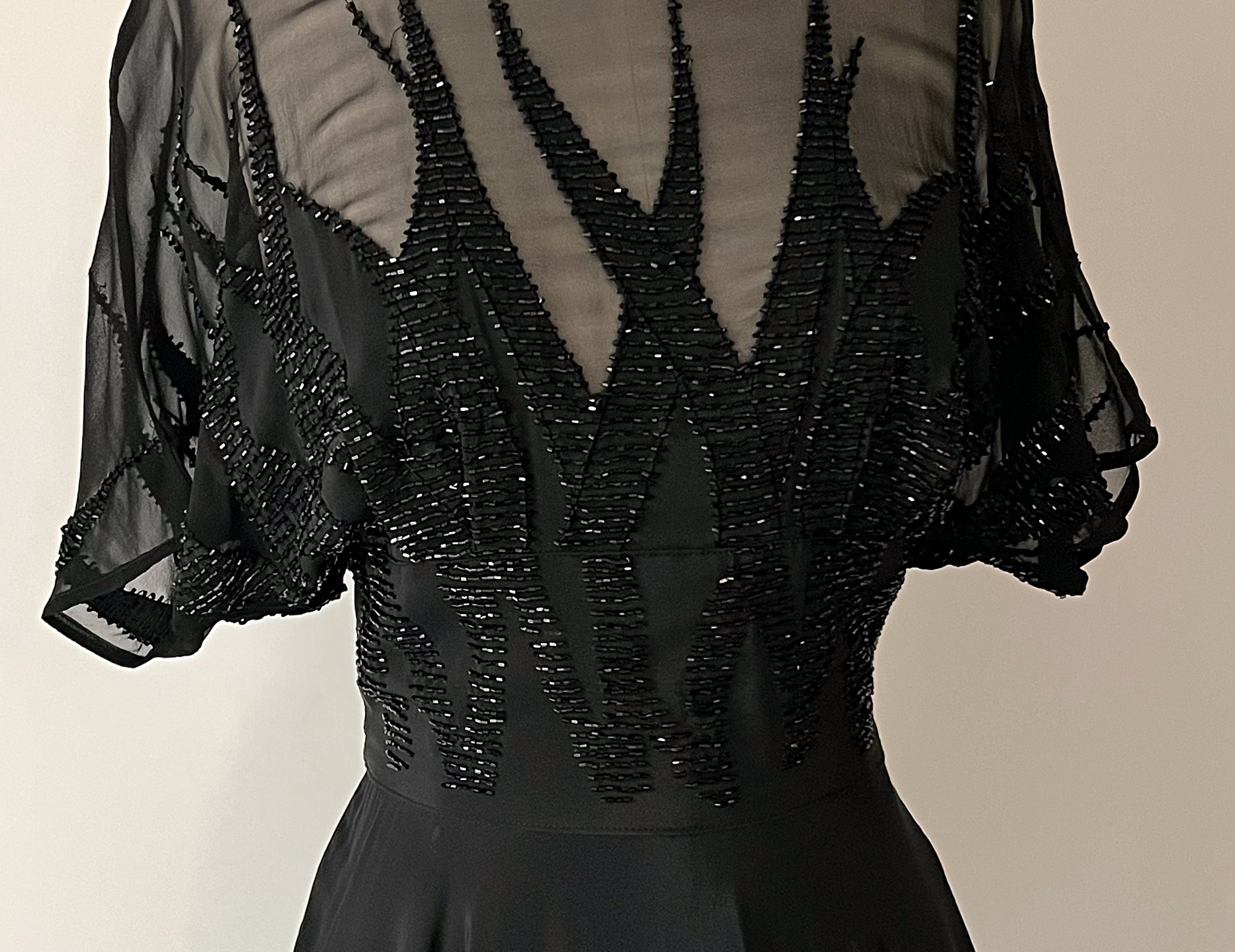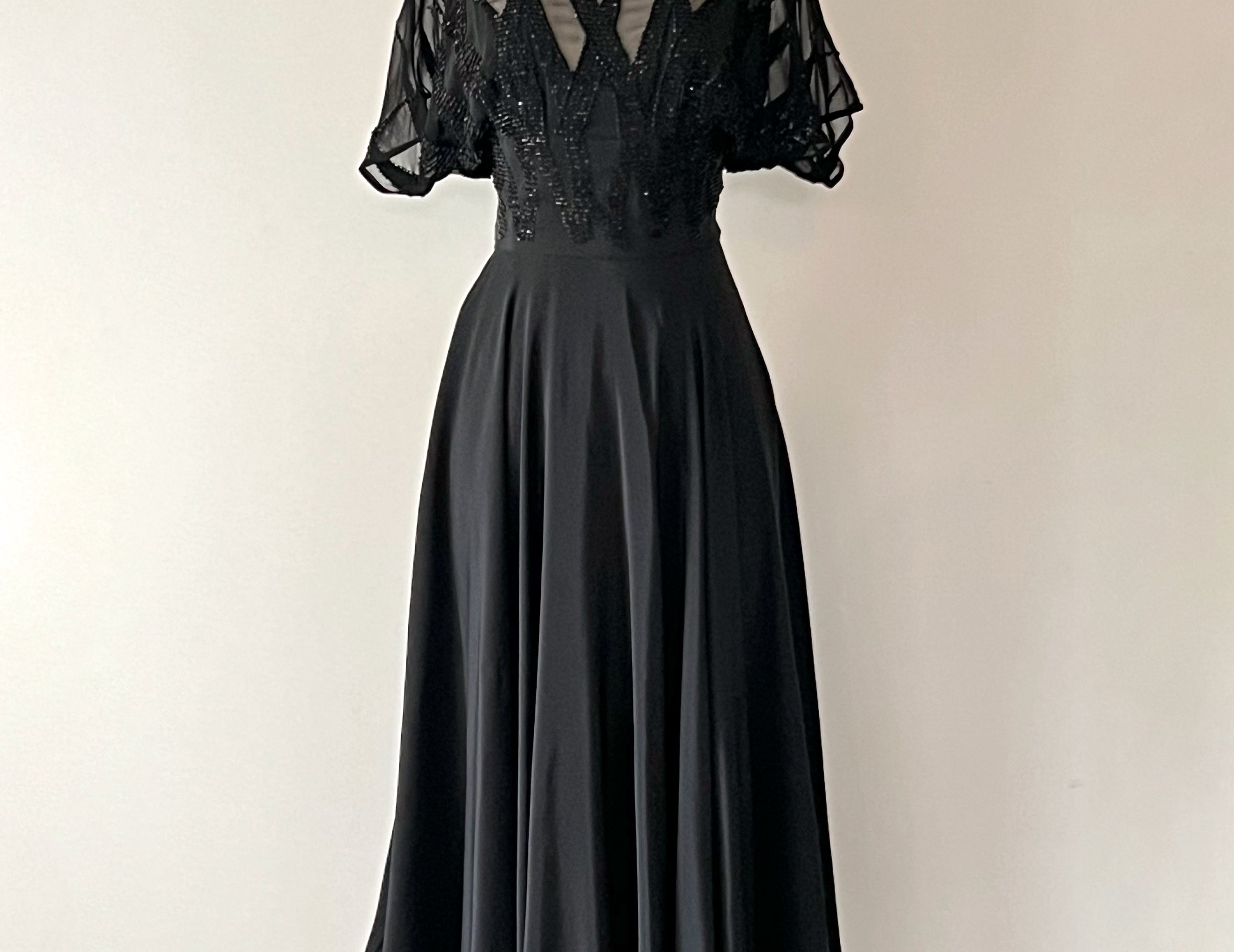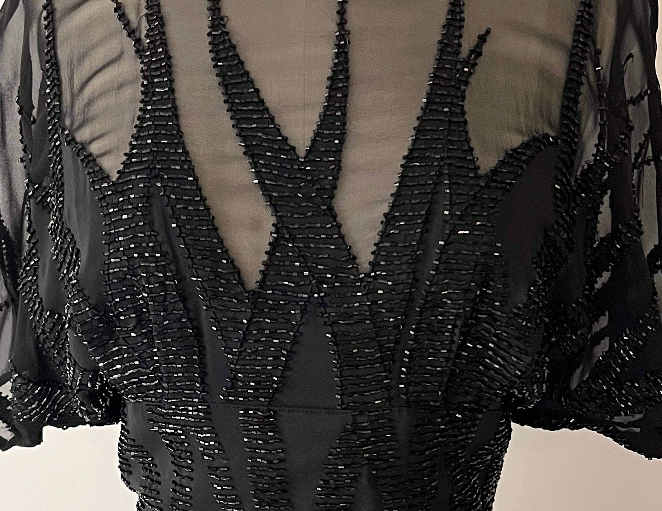 Vintage 1990s 100% Silk Sheer Beaded Dolman Sleeve Holiday Swing Dress