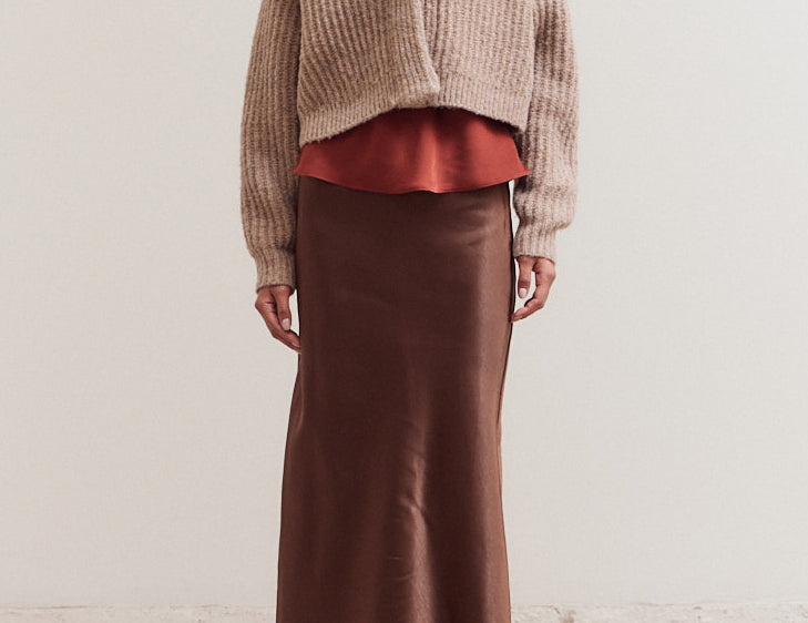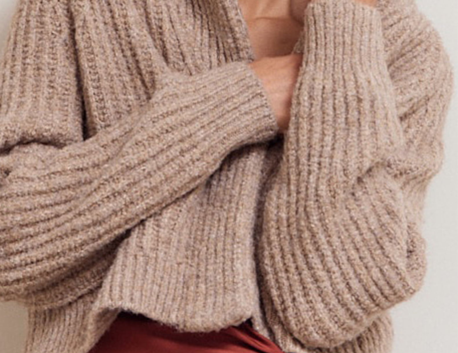 Ultra-plush in a raised cable knit, the Virginie cardigan is draped against a boxy, cropped silhouette with relaxed raglan sleeves and a single button closure. This soft sweater is textured in a chunky ribbed knit in warm taupe and finished with a thick, folded shawl collar. Try it layered over a cotton button-up, a linen camisole, or a satin slip dress.
